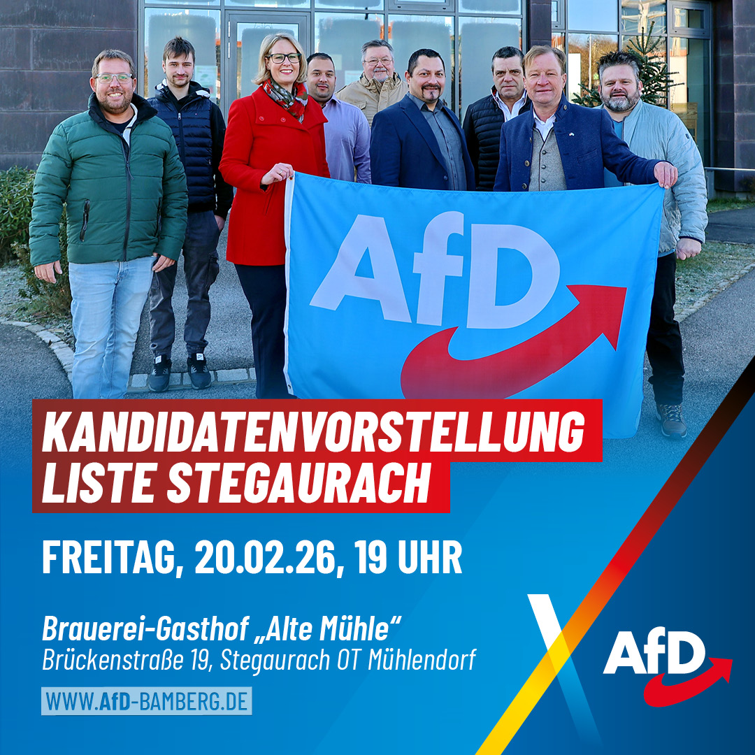 Mit dabei: Florian Köhler, MdL – Landratskandidat Katrin Ebner-Steiner, MdL – Fraktionsvorsitzende der AfD im Bayerischen Landtag Gerald Grosz – die kompromisslose Stimme der Wahrheit! Der bekannte Publizist aus Österreich wird mit gewohnt scharfer Zunge die verlogene Politik der Altparteien entlarven. Ein Mann, der Klartext spricht! ➡️ Außerdem: Vorstellung unserer Kandidaten zur Kommunalwahl 2026 Wir […]